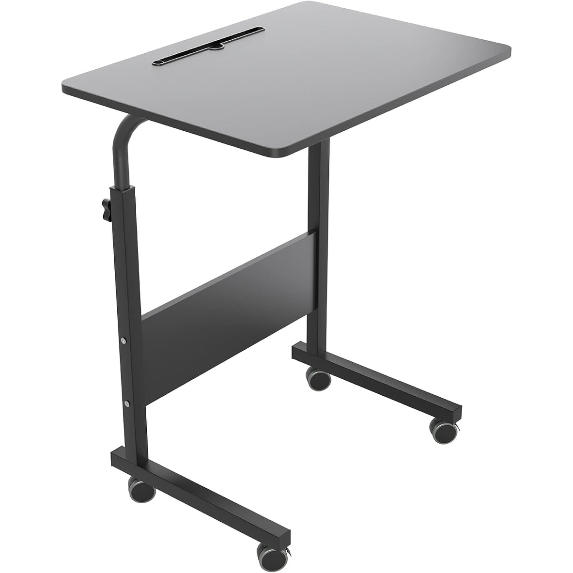 23.6'' Adjustable Portable Standing Desk with Tablet Slot, Mobile Laptop Cart, and Bed Table, Black