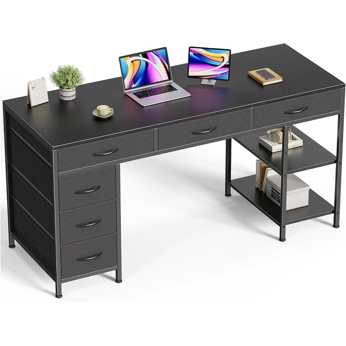 54 Inch Reversible Computer Desk with 6 Drawers, Adjustable Shelf, Multi-Functional for Home Office, Gaming, and Study, Black