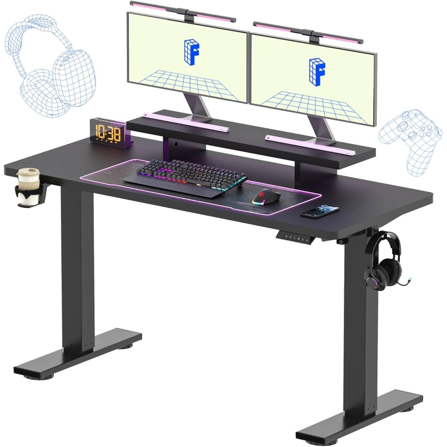 55 x 24 Inches Electric Height Adjustable Standing Desk with Monitor Stand, Cup Holder & Memory Presets (Black)