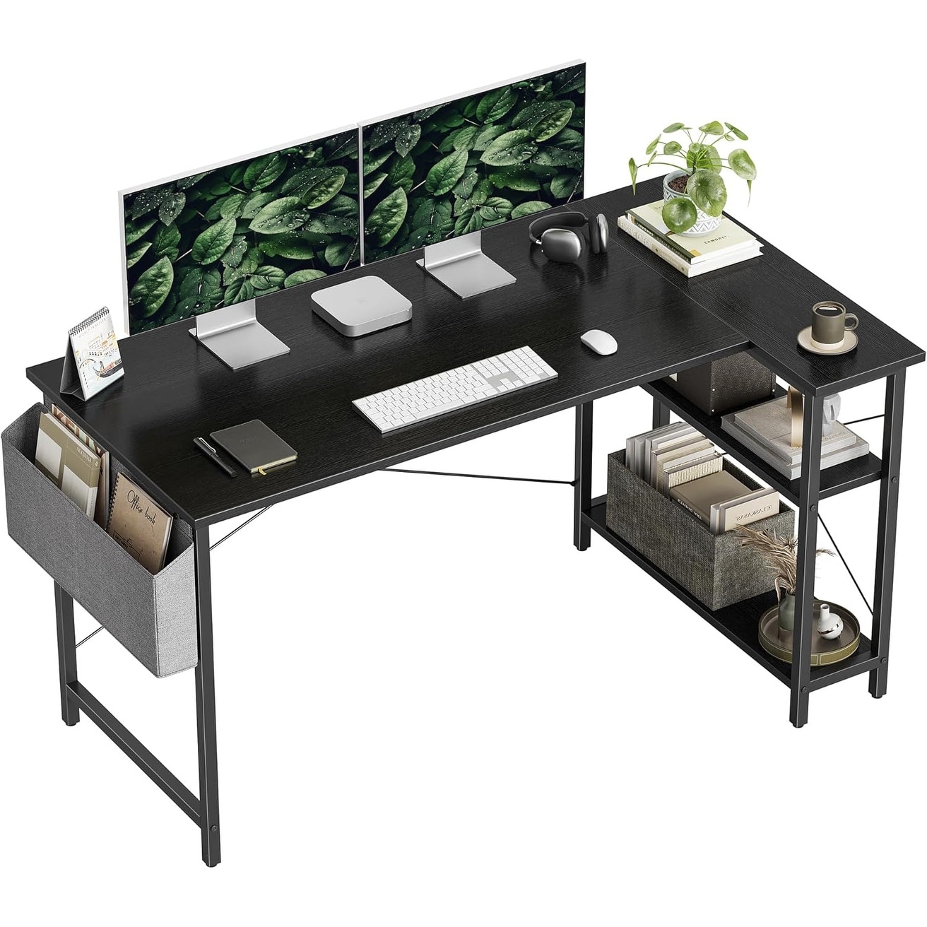 55 Inch Reversible L-Shaped Computer Desk with Storage Shelves, Black