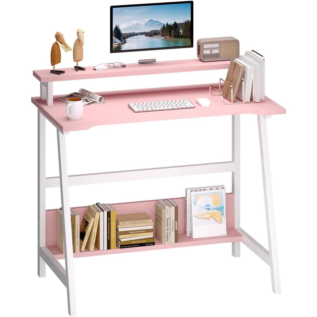 31.5-Inch Home Office Desk with Storage Shelf and Bookshelf, Modern Style