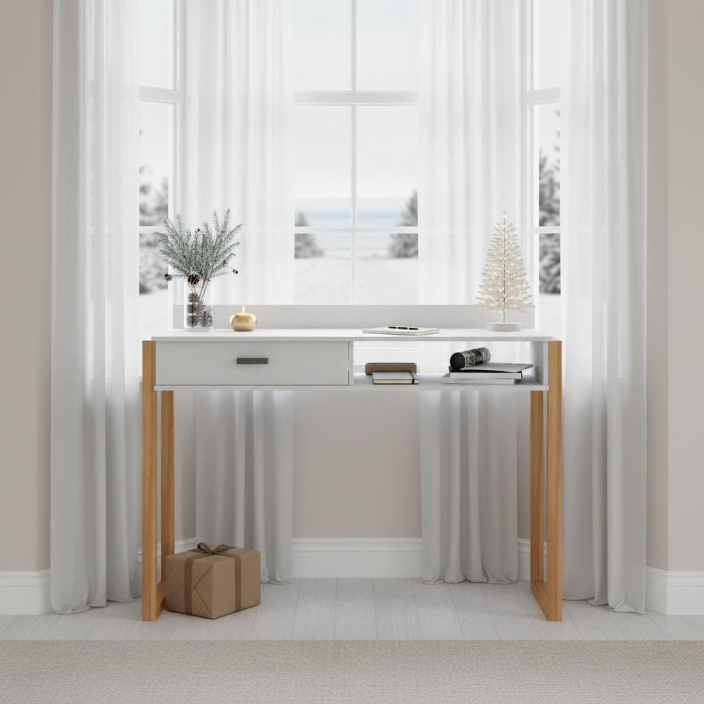 Modern Computer Desk with Drawer, Space-Saving, Shelf and Dual USB Charging Ports