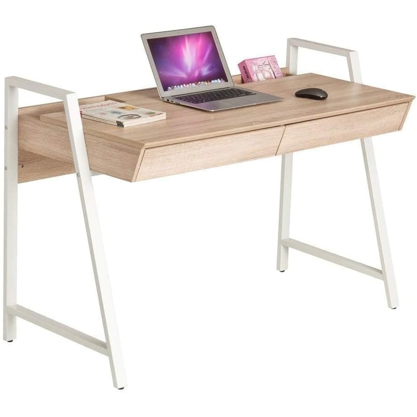 Modern 50" Wooden Computer Desk with Drawers and Storage, White and Oak