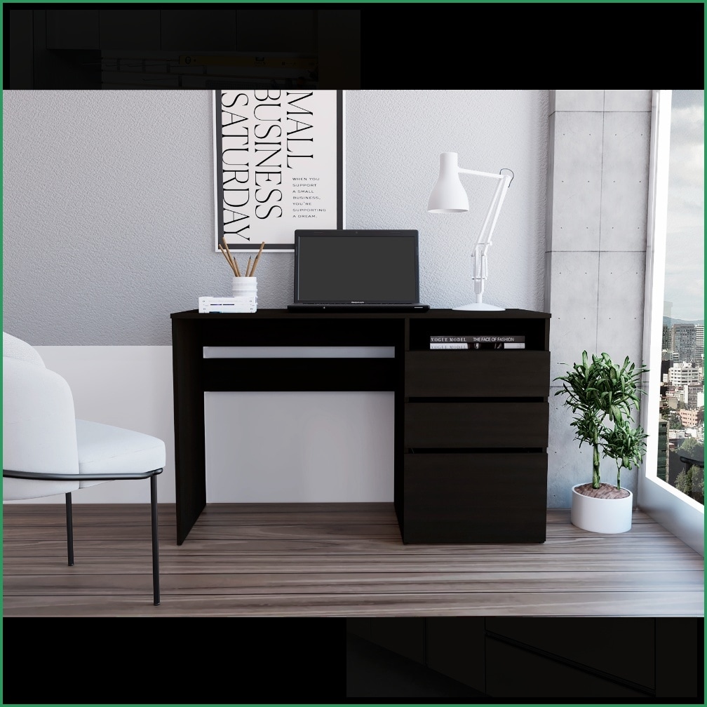 Desks, Modern Compact Computer Desk with 3 Drawers and Shelf, 47.4 Inches Wide, Black, Particle Board