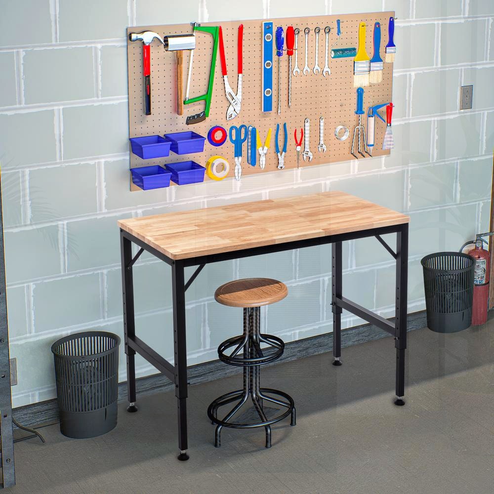 48 Inch Heavy-Duty Adjustable Workbench for Garage with Rubber Wood