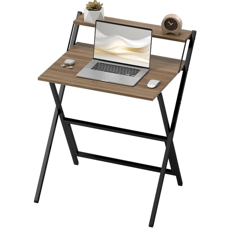 Folding Computer Desk, with Monitor Shelf for Small Space, Home Office, Study, Walnut