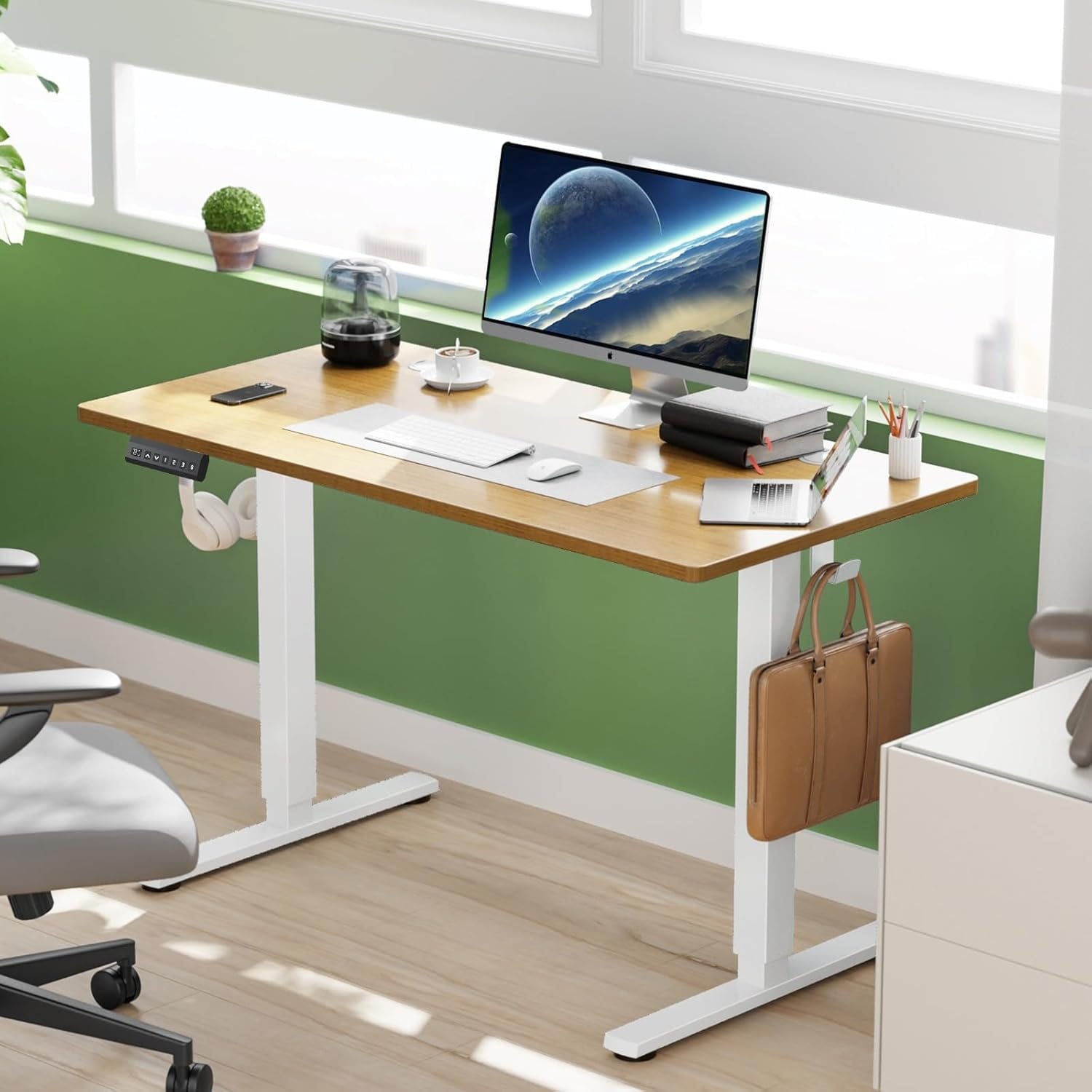 Electric Height Adjustable Standing Desk, 55x24 Inches, Ergonomic Sit-to-Stand Rising Computer Table for Home Office