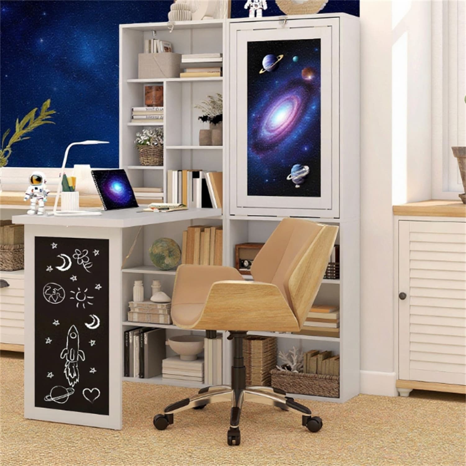 Bamboo Folding Desk with Shelves, Space-Saving Writing, Vanity Table