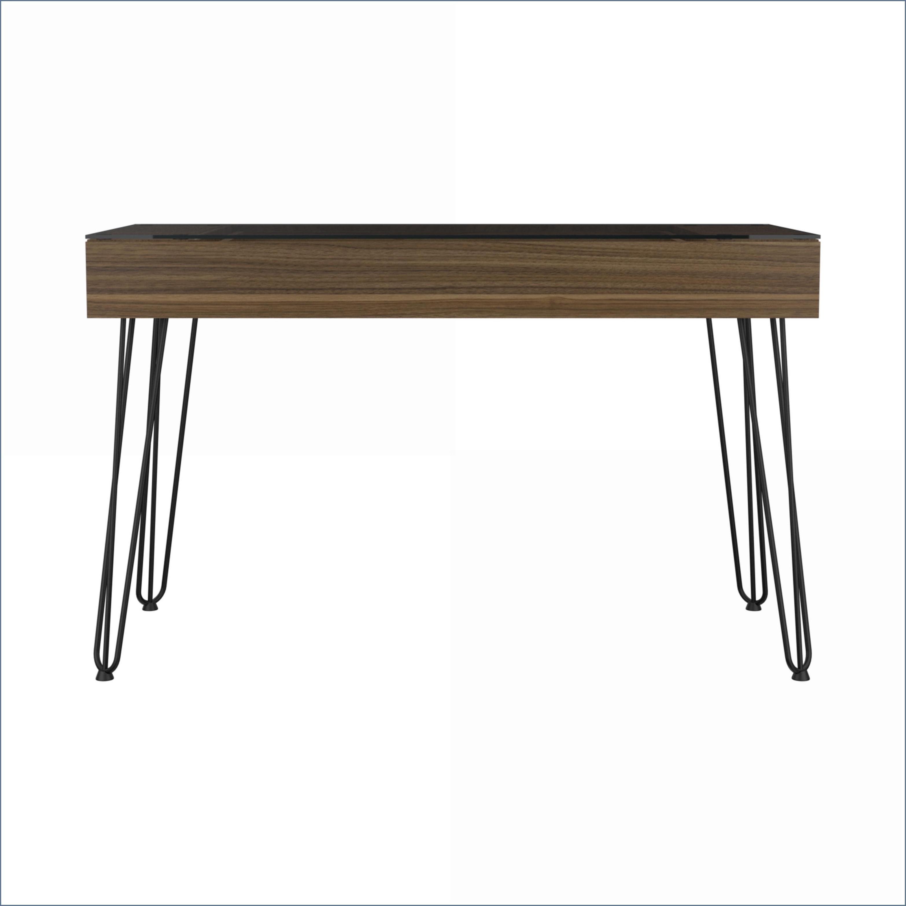 Desks, Industrial Office Desk with Spacious Drawer, Glass Top, Metal Legs, Mahogany, Particle Board