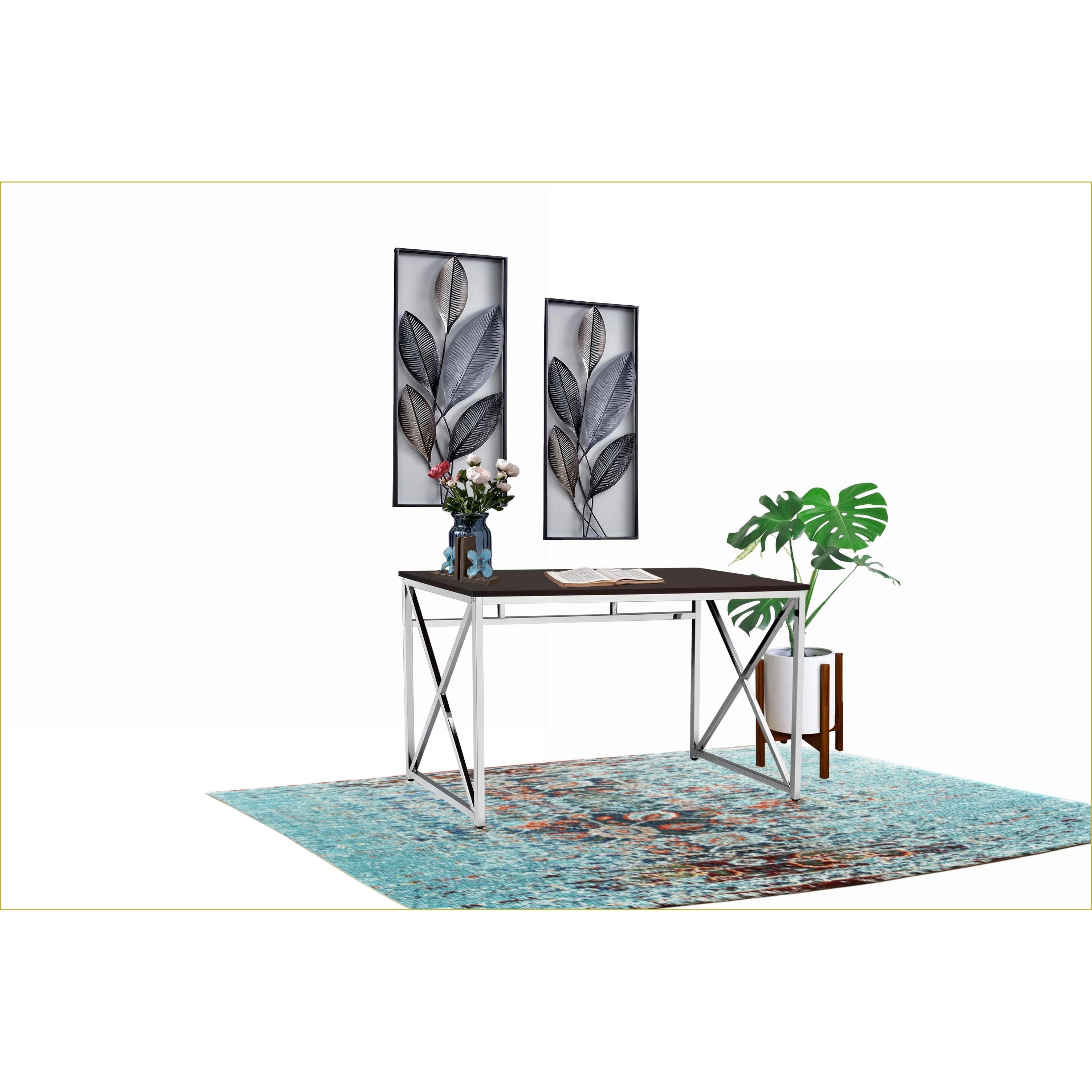 Desks for Home Office, 47in Wide Modern Brown Engineered Wood Desk with Chrome X-Cross Legs, Brown, Engineered Wood