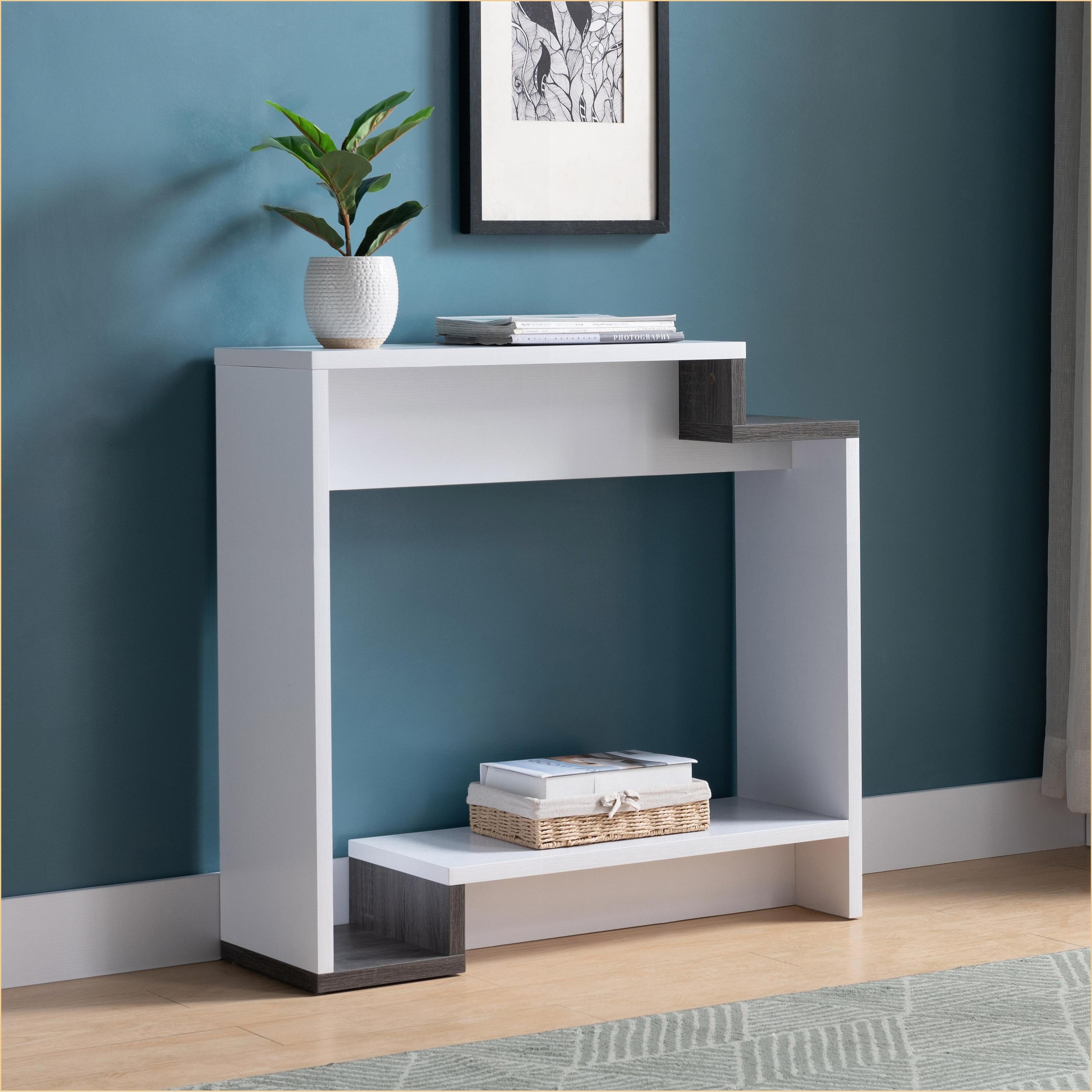 Console Table, Contemporary Two Open Shelves White and Grey, Particle Board