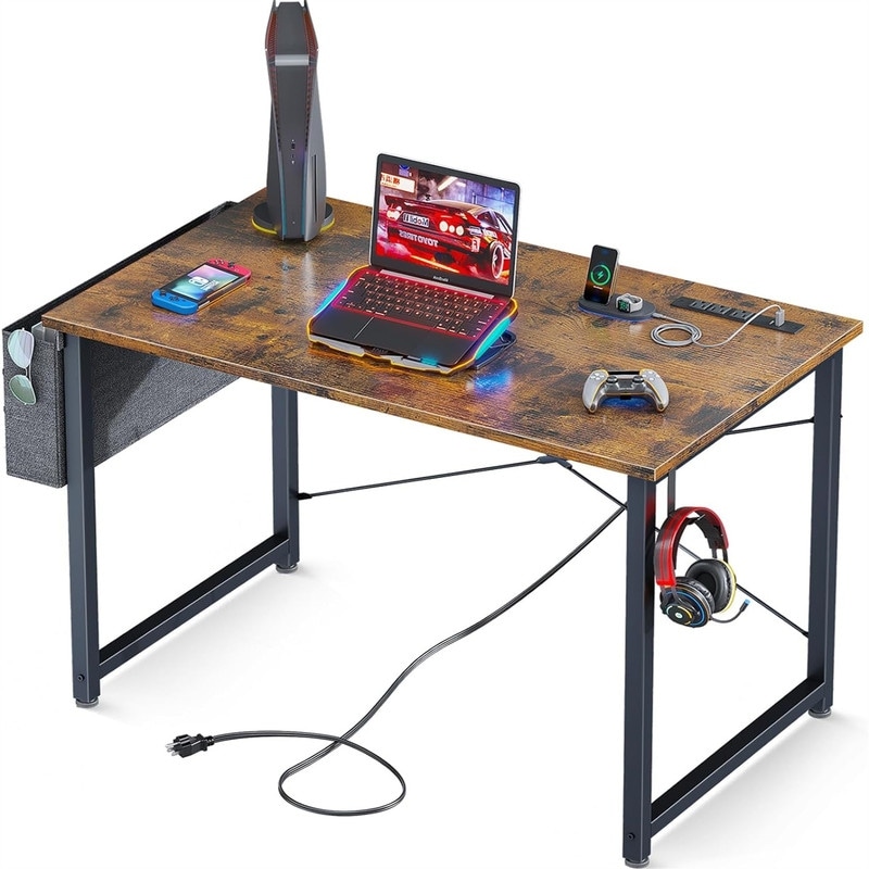Computer Desk for Office, Five Cubbies, Smokey Oak Finish