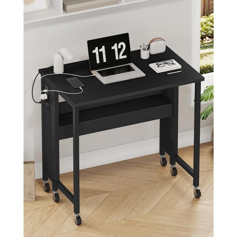 31.5" Modern Folding Computer Desk with Power Outlets