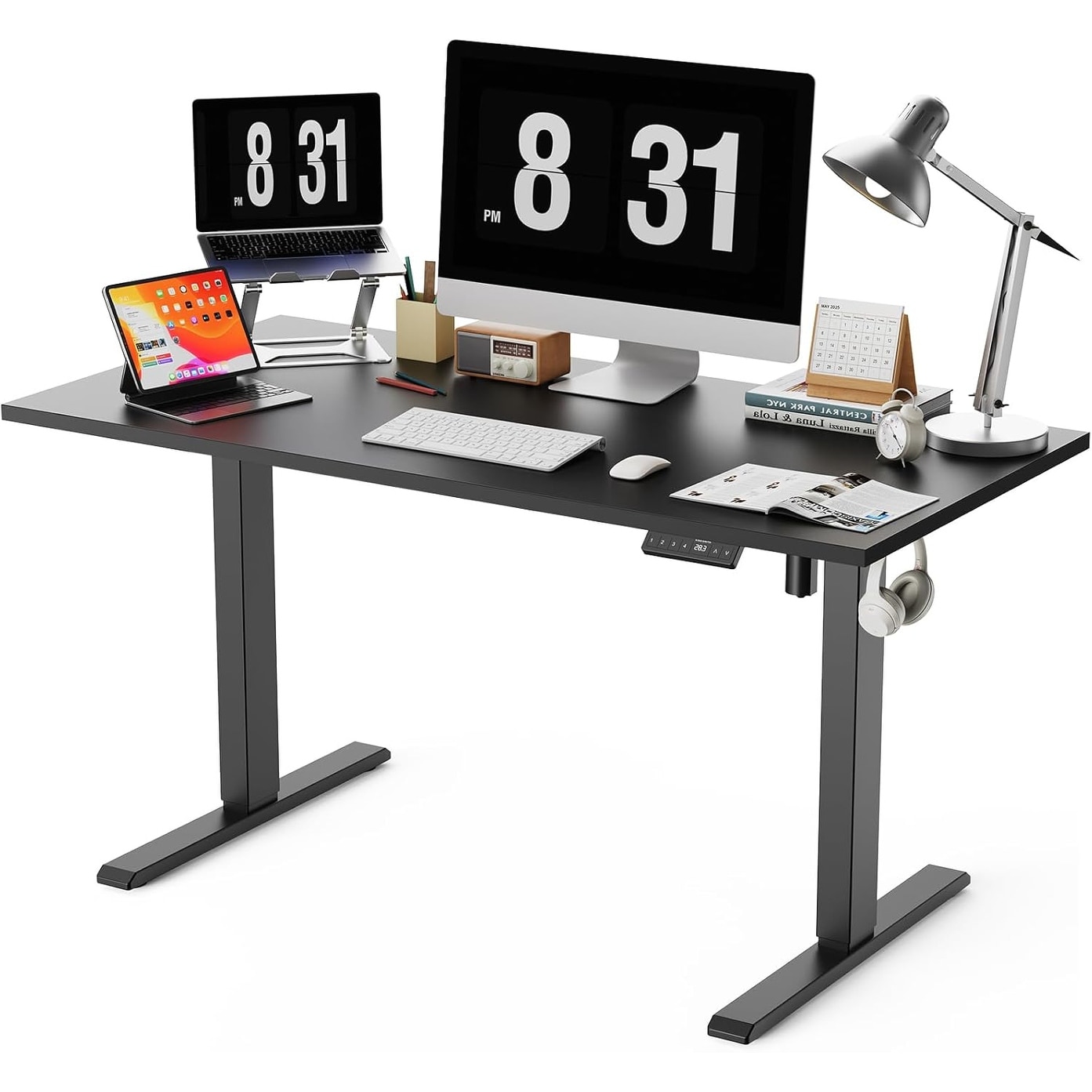 55x28 Inches Electric Height Adjustable Standing Desk, Ergonomic One-Piece Desktop for Home Office, Black