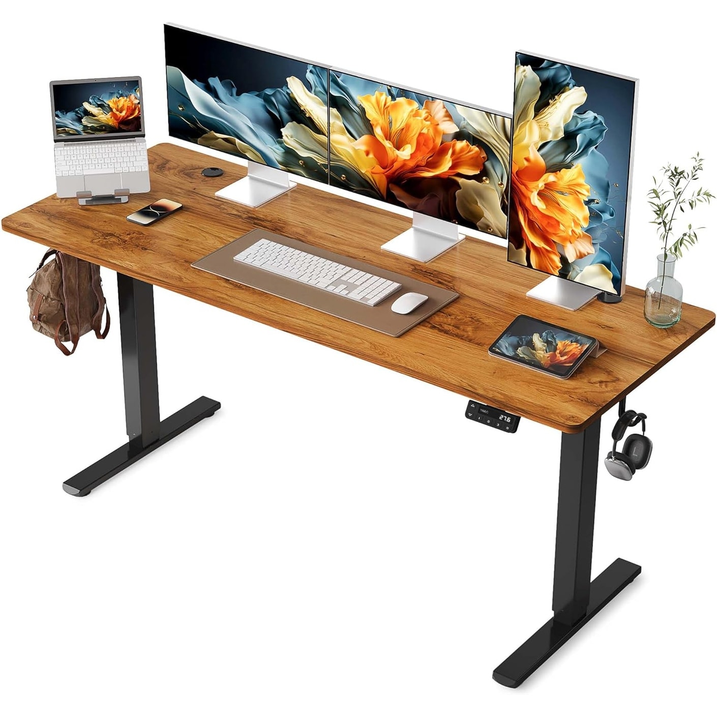 Adjustable Height Electric Standing Desk with Memory Presets, Headphone Hook, 55x24 Inch, Black Walnut