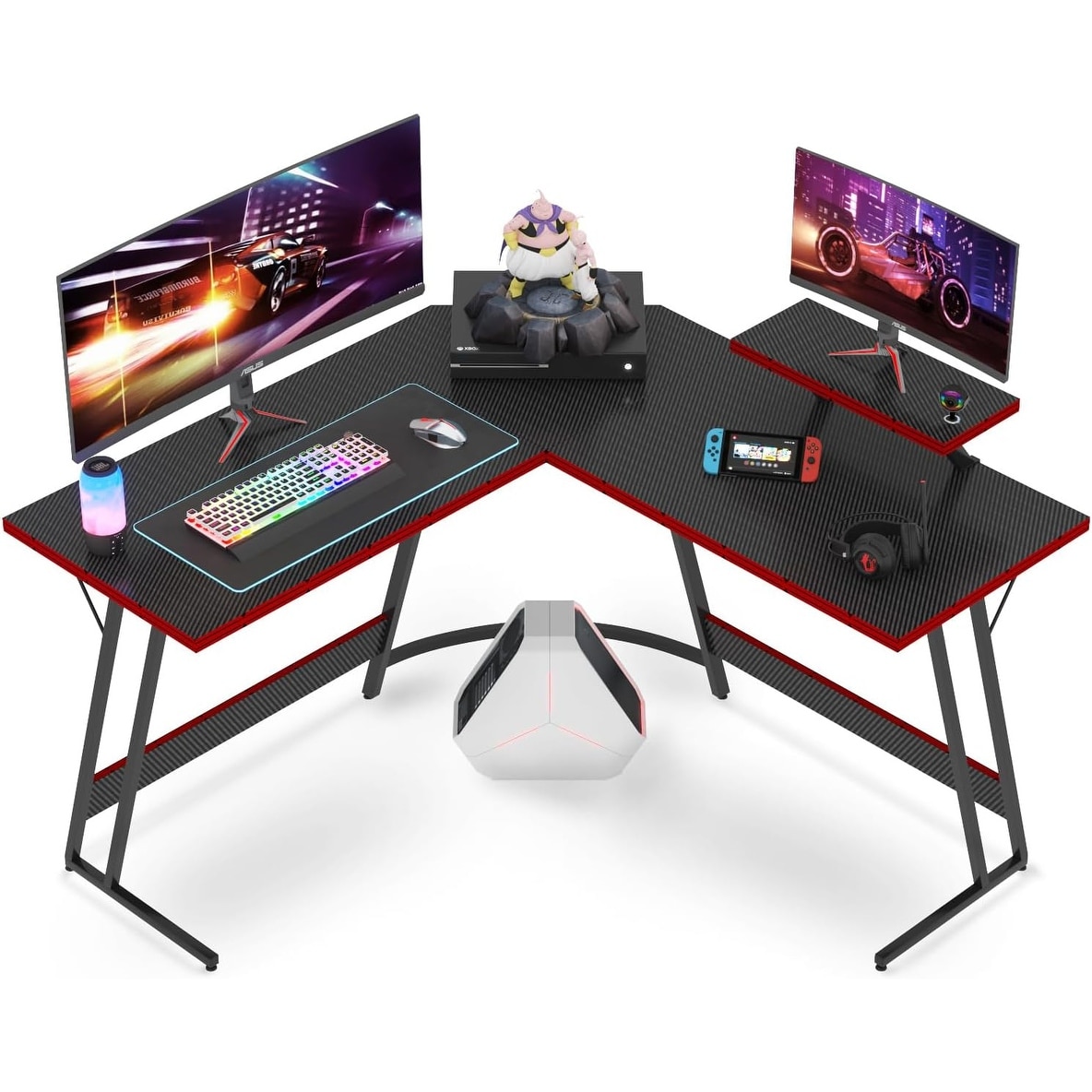 L Shaped Computer Gaming Corner Desk LED Light Storage Bookshelf