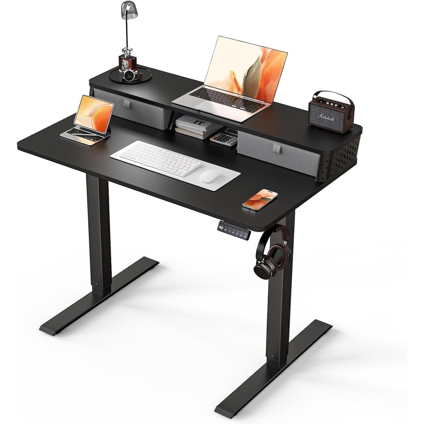 Adjustable Height Electric Standing Desk with Storage Drawers, C-Clamp Mount, and Ergonomic Design