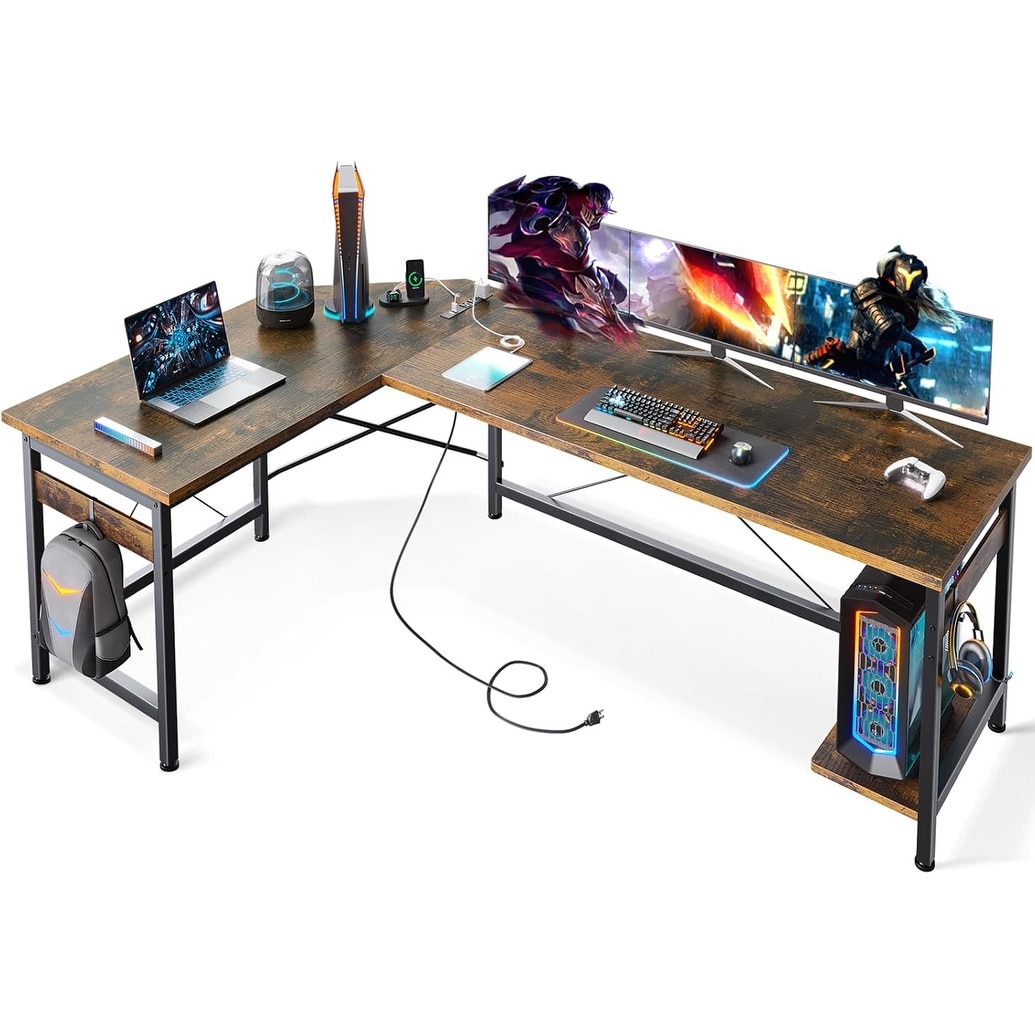 66 Inch L-Shaped Gaming Desk with USB Ports, Power Outlets, CPU Stand, and Adjustable Legs for Home Office