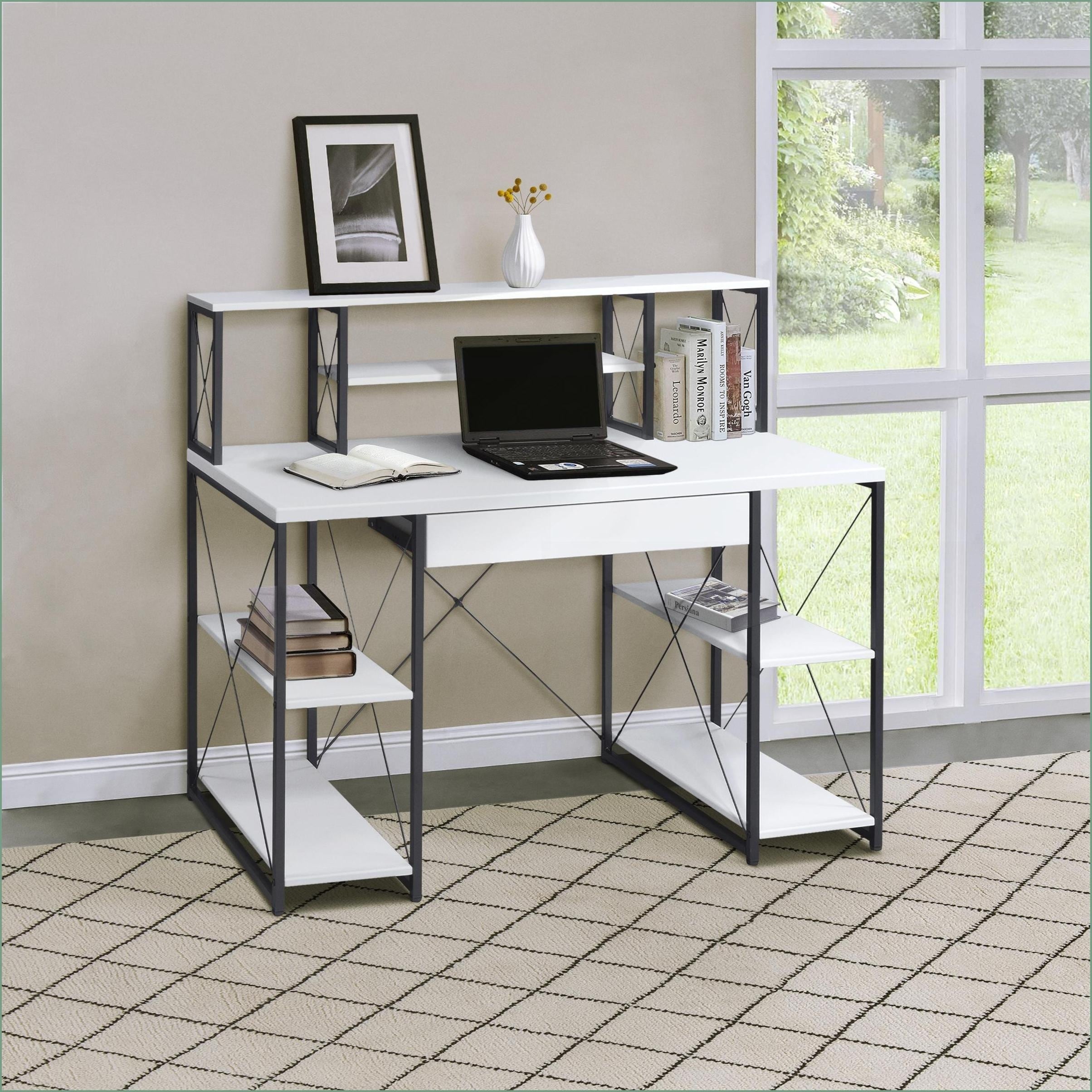 Desks, Modern White and Black Office Desk with Hutch and Open Shelves, 47.5W x 24.5D x 41.5H, White+Black, Wood+Metal