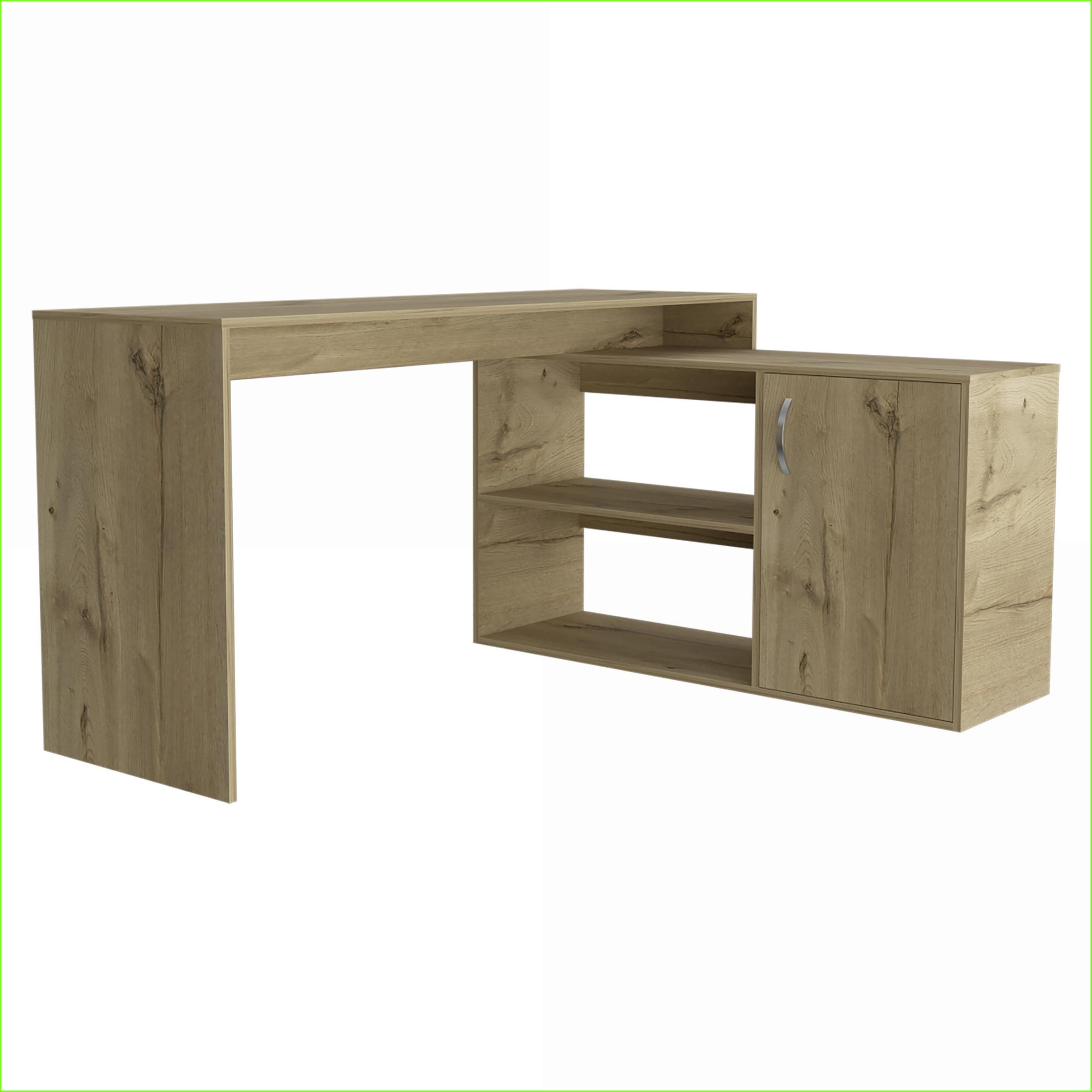 Desks, L-Shaped Corner Office Desk with Storage Shelves and Cabinet, Light Oak, Particle Board