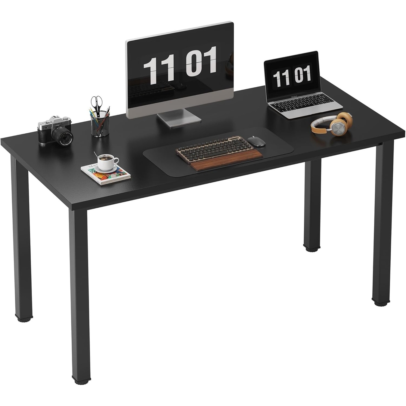 47 Inch Modern Home Office Desk, Black Metal Frame, Study and Gaming Table with Large Working Space