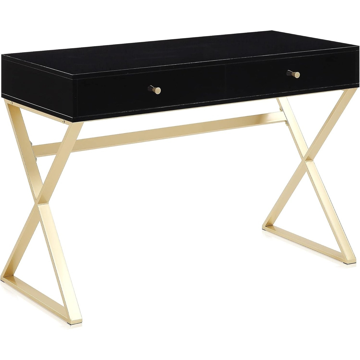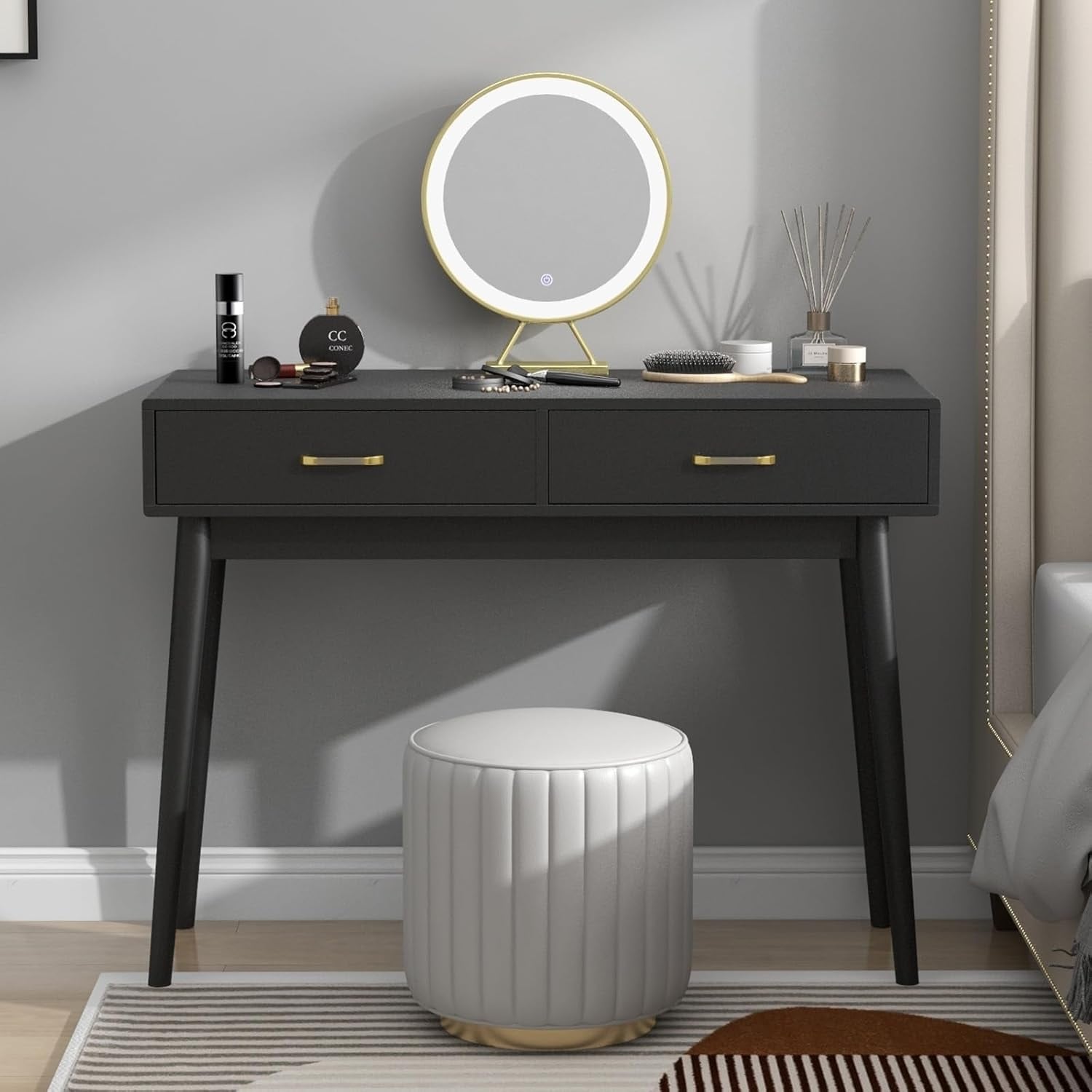 Modern 42 Inch Vanity Dressing Table with Two Storage Drawers, Wood Top, and Gold Metal Frame