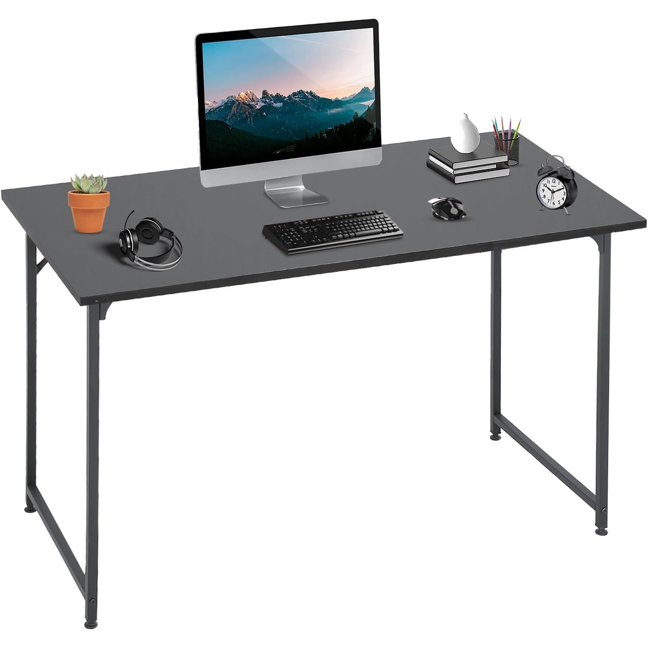 47 Inch Multi-Functional Computer Desk with Metal Frame, Space Saving Design for Home Office, Black