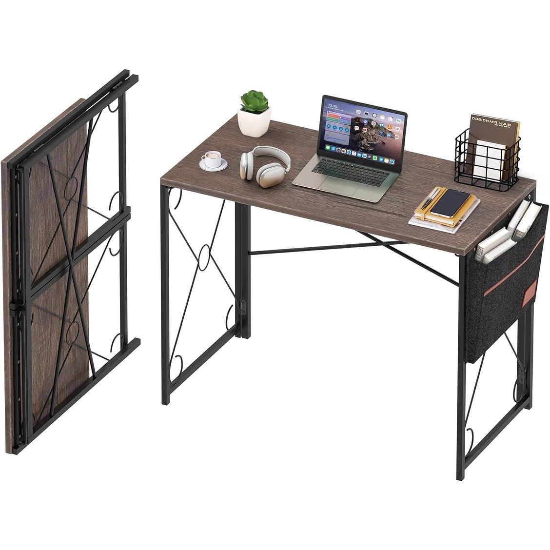 39 Inch Foldable Computer Desk for Home Office, Portable Writing Table for Small Spaces, Grey