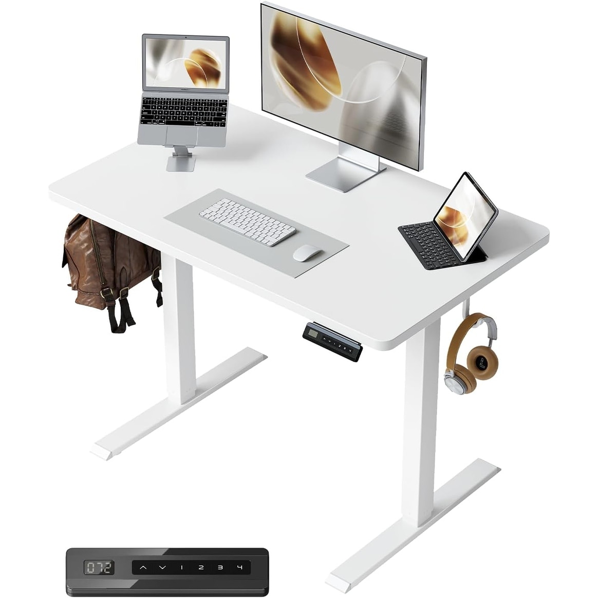 Adjustable Electric Standing Desk, 40x24 Inch, 4 Memory Presets, Headphone Hook, White