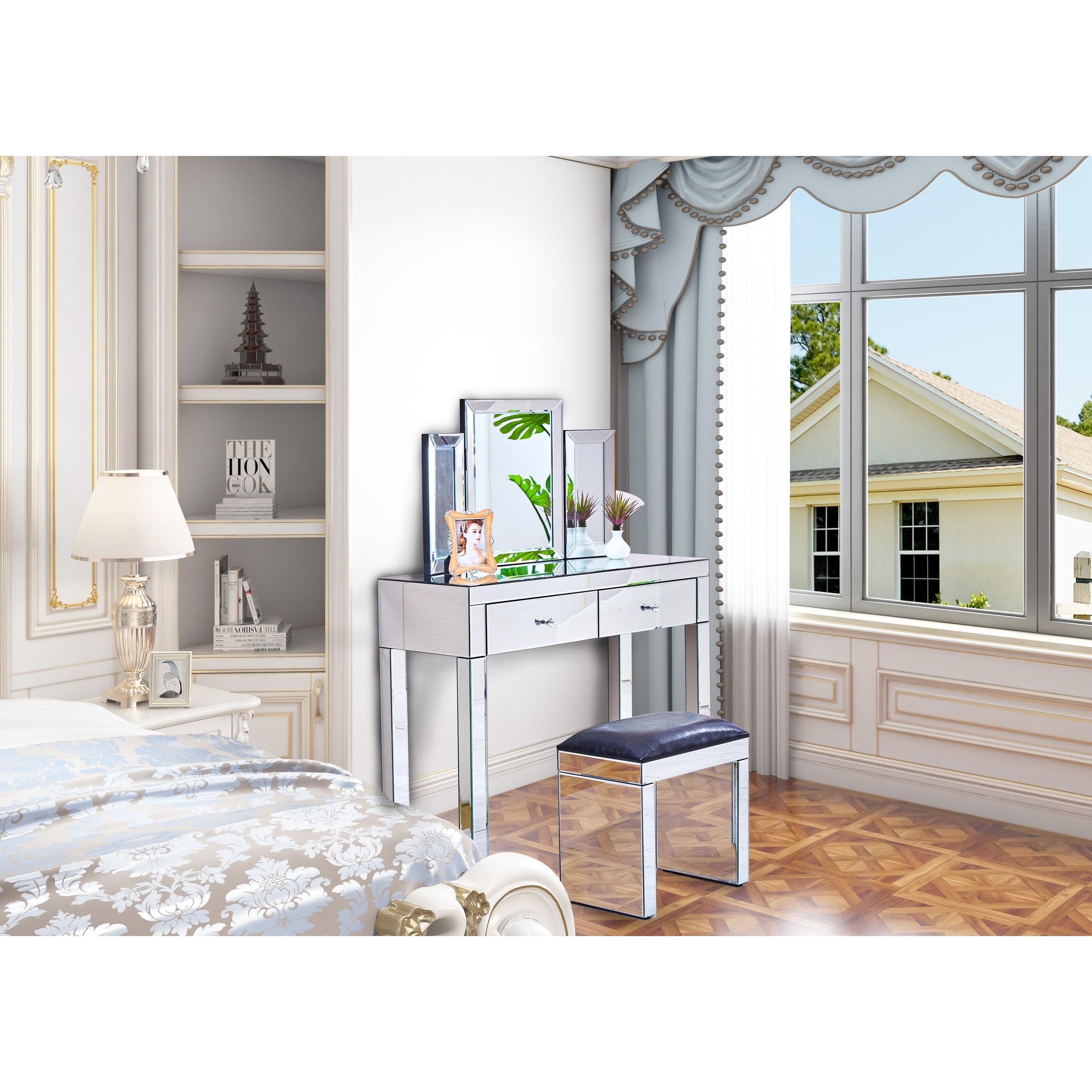Mirror Desktop Dressing Table 2 Drawer Dressing Table For Female And Girl Home Offices
