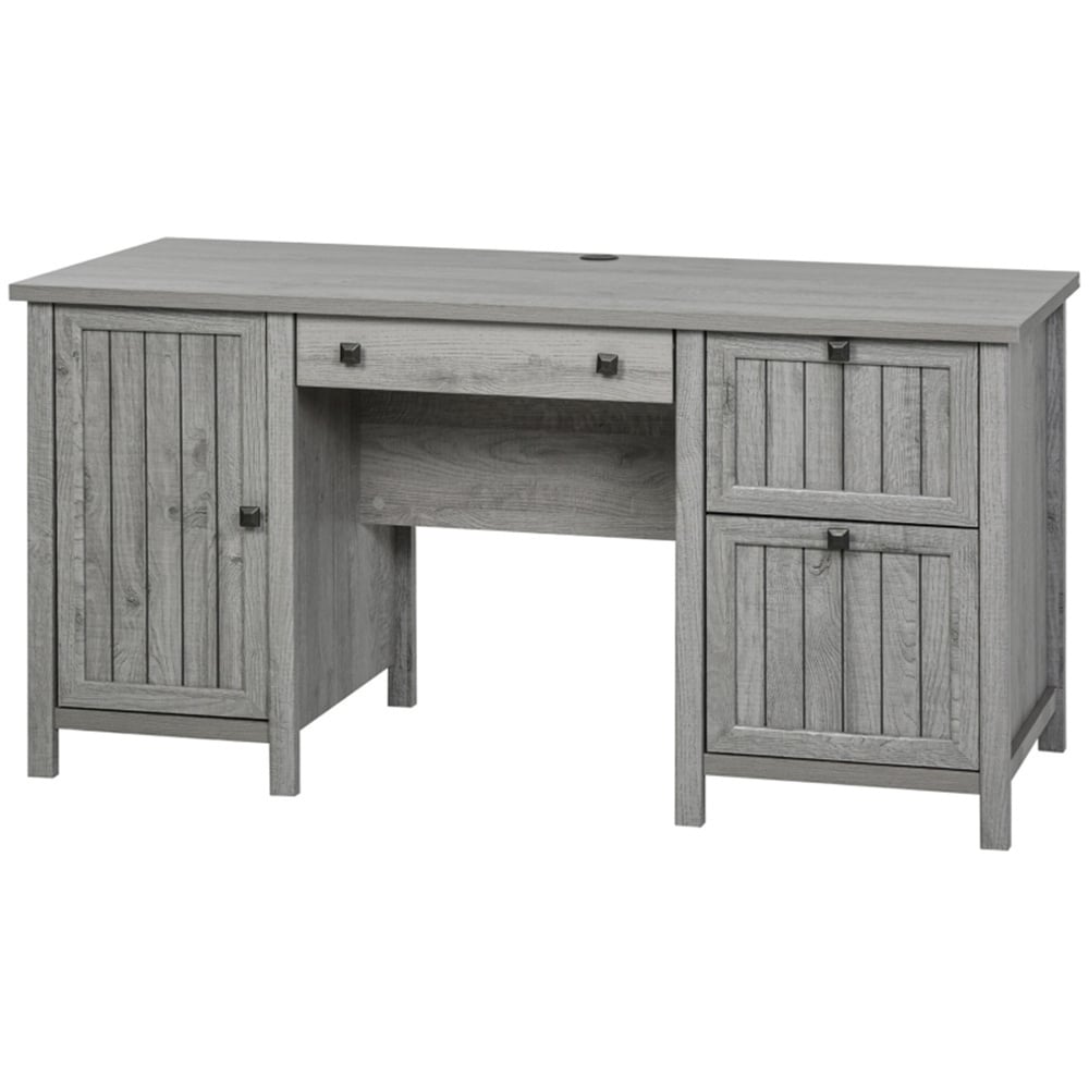 Grey Wood Office Computer Desk with Drawers Cable Management Home Workstation