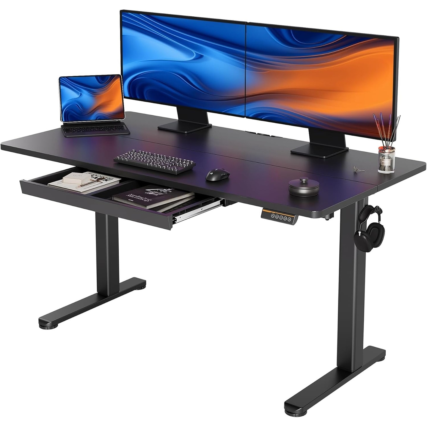 Adjustable Height Standing Desk with Drawers, 55 x 24 Inch Sit Stand Computer Desk for Home Office, Black