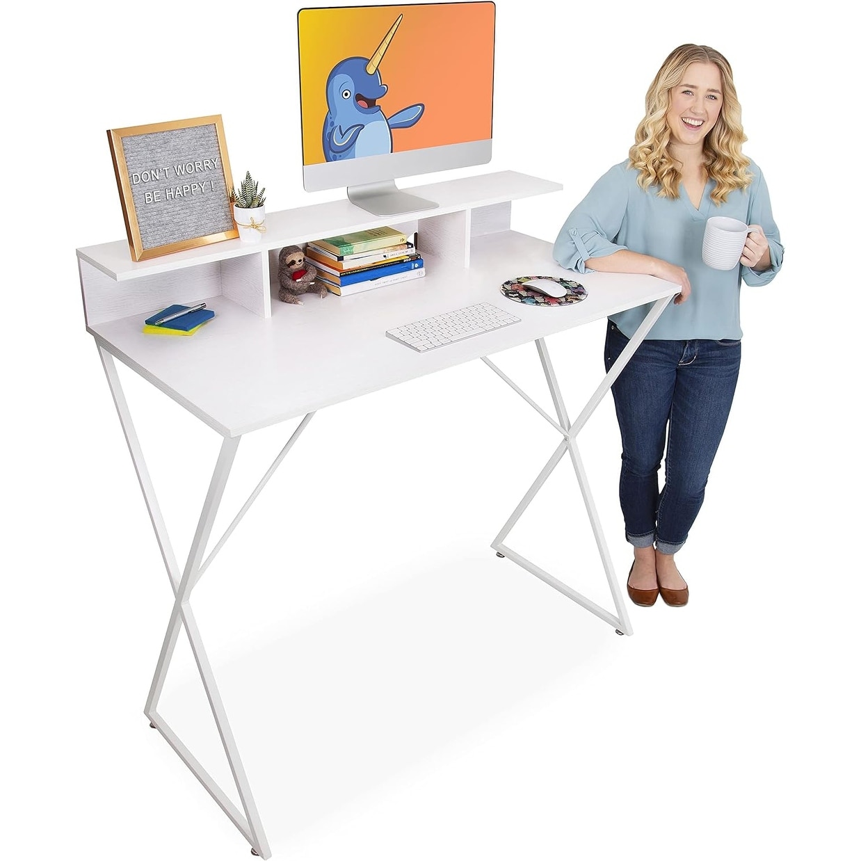 Standing Desk with Shelf & Storage Cubbies, White, 48in x 42in