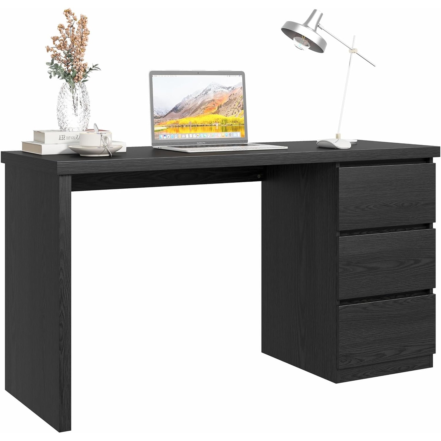 53.5-inch Wood Computer Desk with Drawers, Modern Workstation for Home Office, Gaming, and Living Room, Black