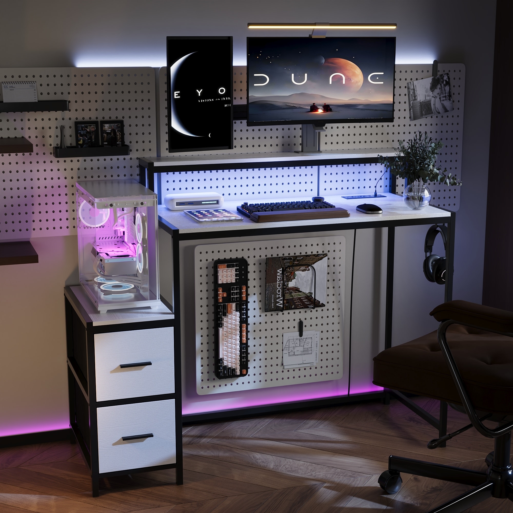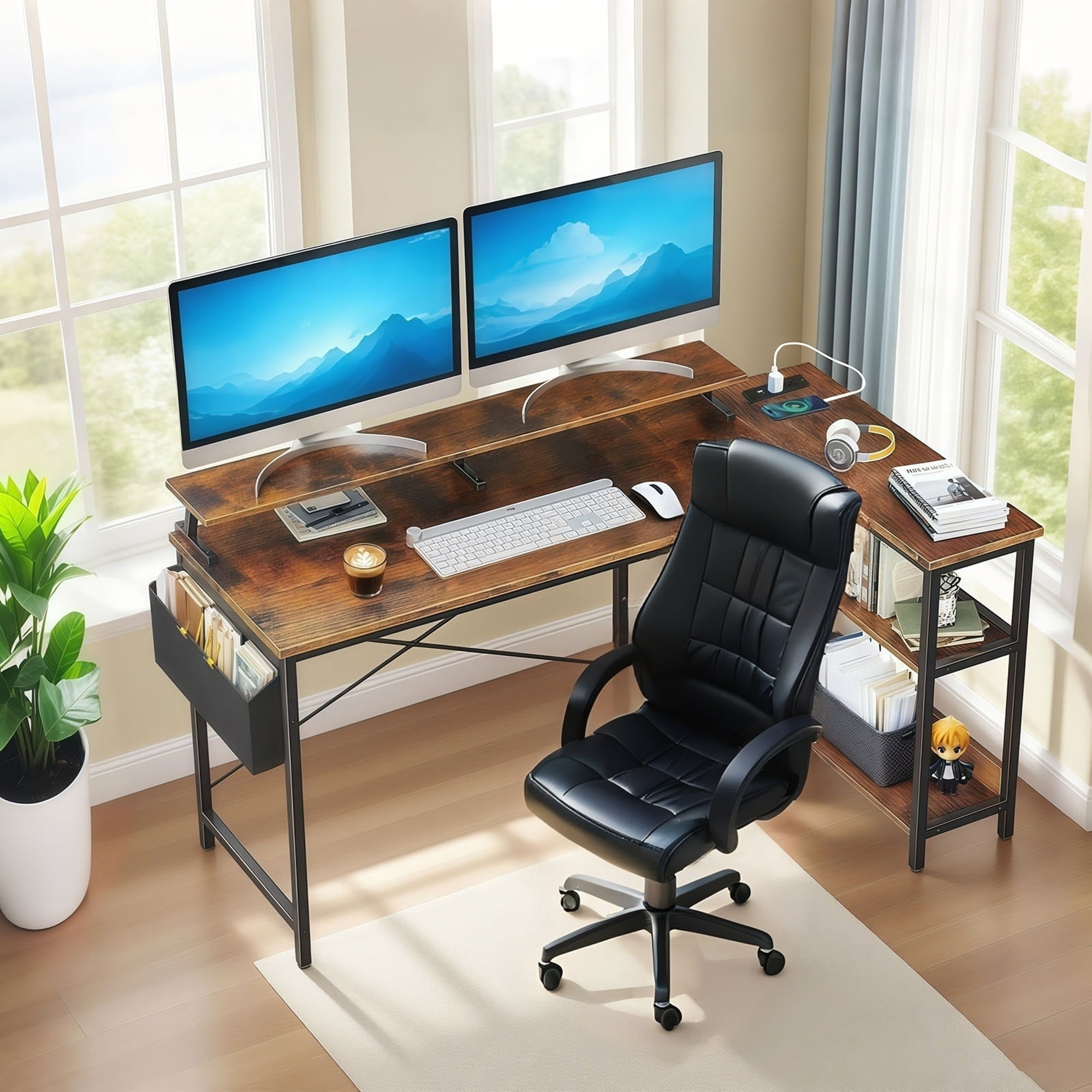 47in Reversible L Shaped Gaming Desk with Power Outlets, Monitor Stand, and Storage for Home Office and Small Spaces