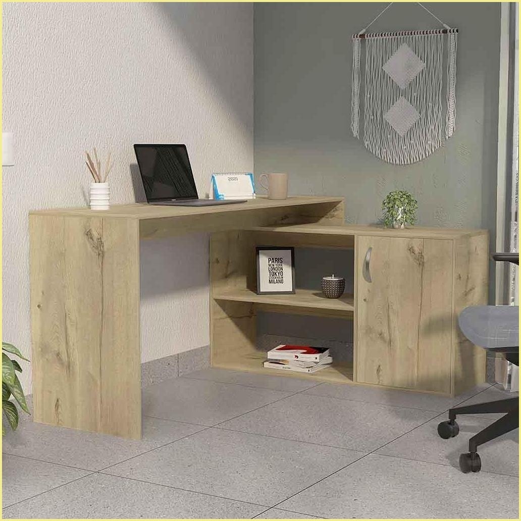 L Shaped Modern Corner Home Office Desk with Reversible Storage Cabinet