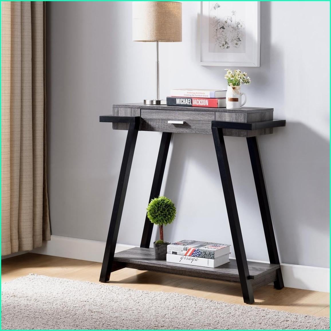 Modern Console Table with Drawer and Bottom Shelf, Distressed Grey and Black, Particle Board, Grey