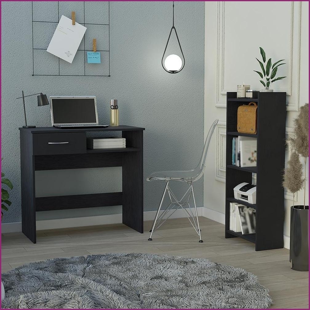 2-Piece Office Desk Set, Dozza Bookcase and Aramis Desk, Black, Particle Board