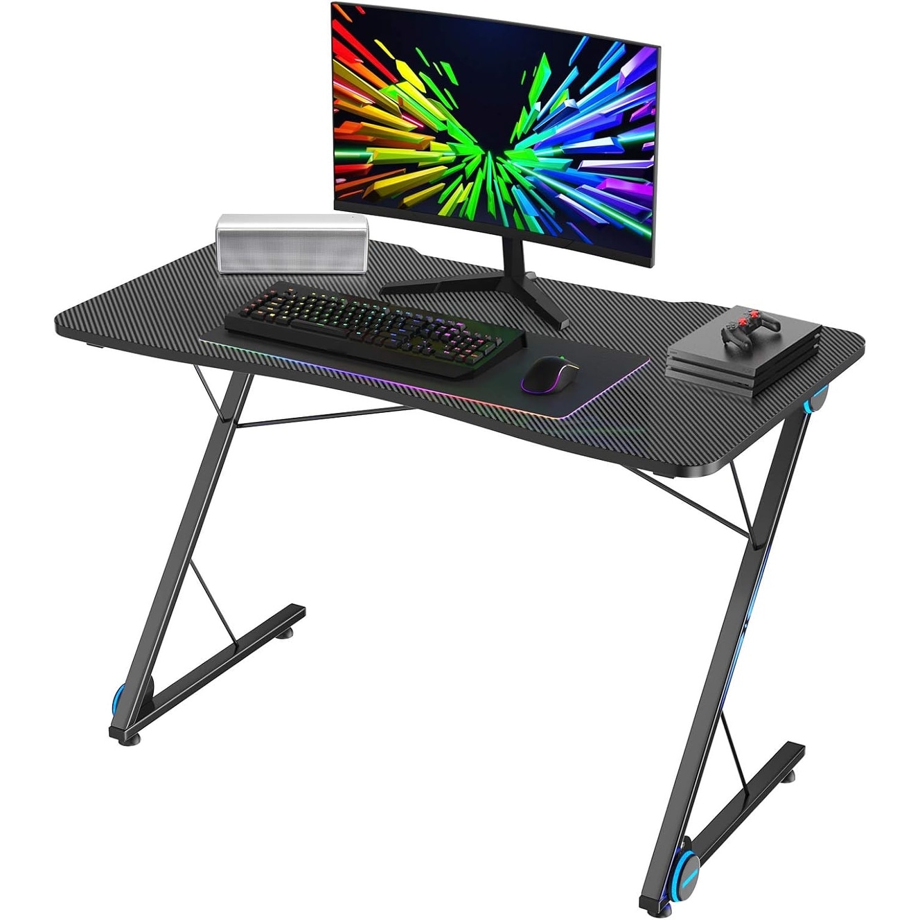 Z-Shaped LED Gaming Desk with Large Carbon Fiber Surface, Ergonomic Design, and Cable Management