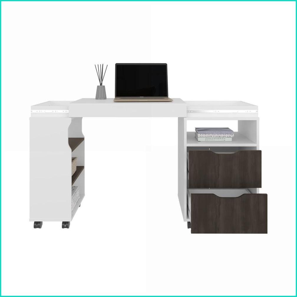 Desks, Extendable White and Dark Walnut Desk with Storage and Casters, Multi, Engineered Wood