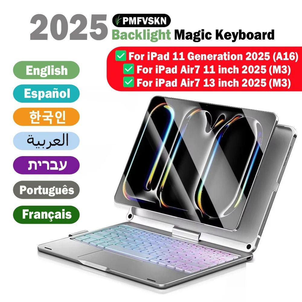 360 Degree Magic Keyboard Case For IPad 11 13 Inch spanish Layout air13 M3 2025 Black
