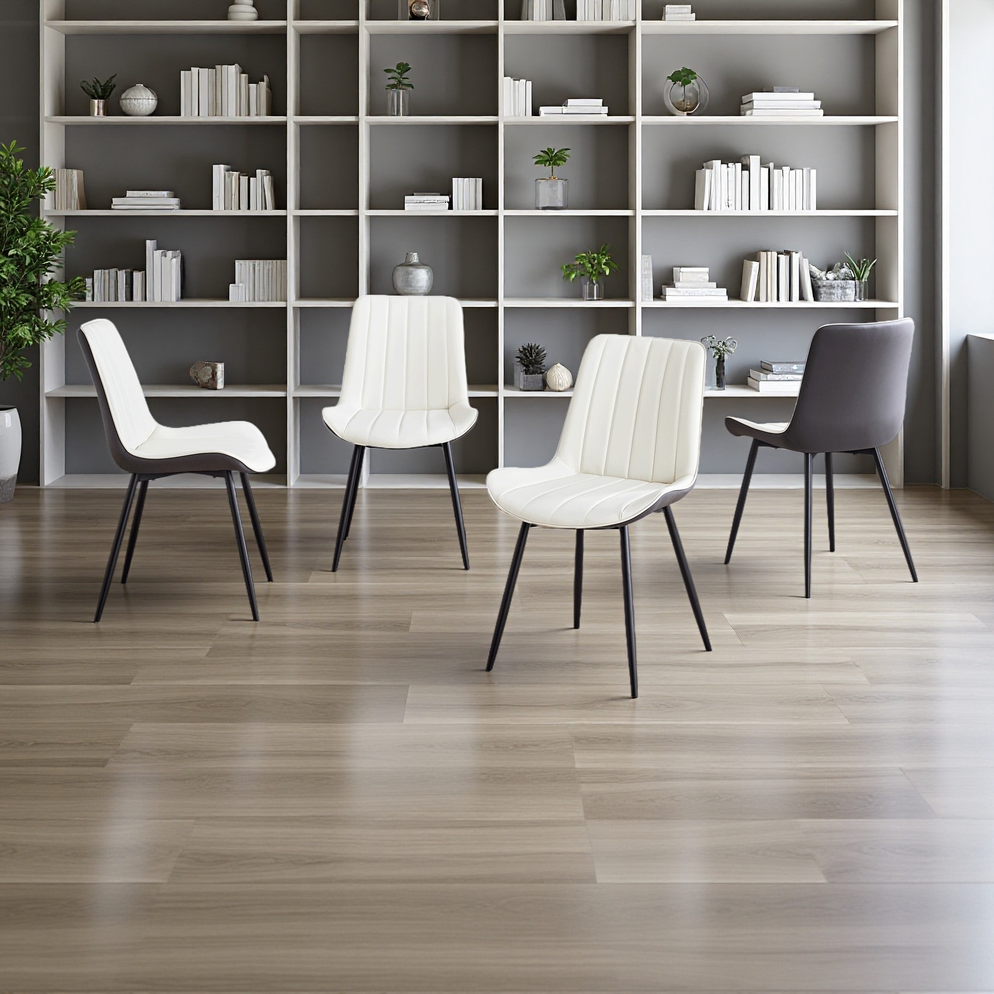 32.2"H Set of 4 Extended PU Leather Dining Chair Set with Wide Cushion & Integrated Metal Legs-Modern Smooth Line Design