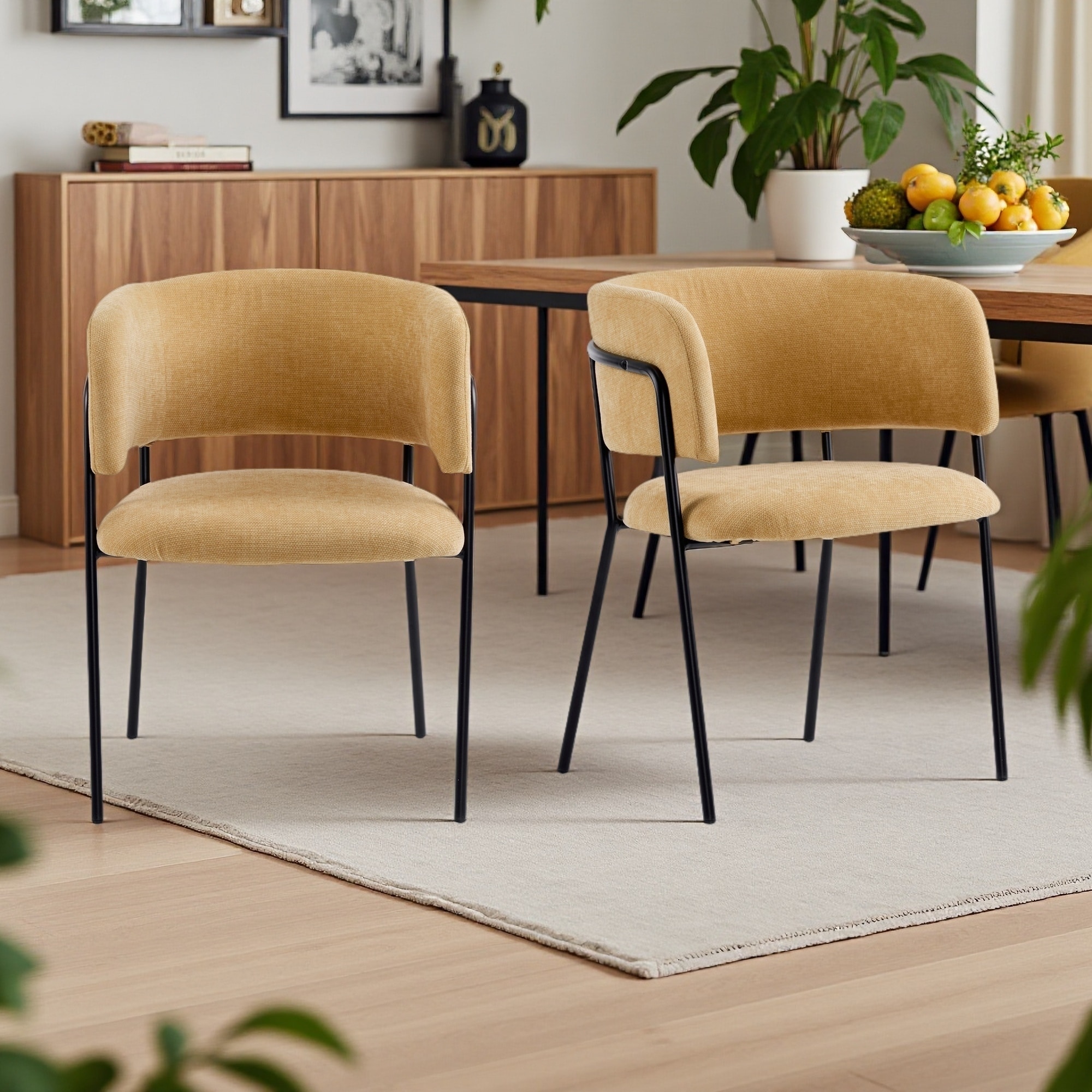 30"H Set of 2 Upholstered Dining Chair with Armrests & Metal Legs - Modern Style, Soft Padded Seat