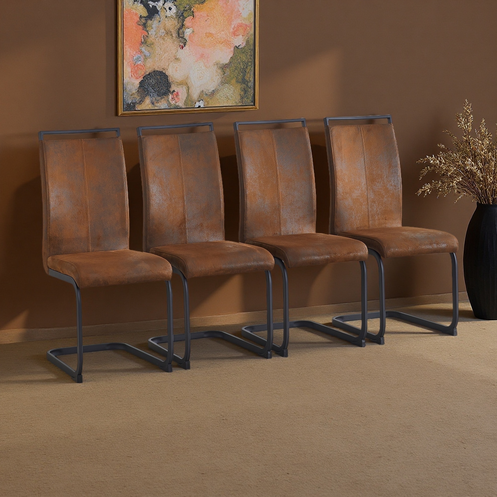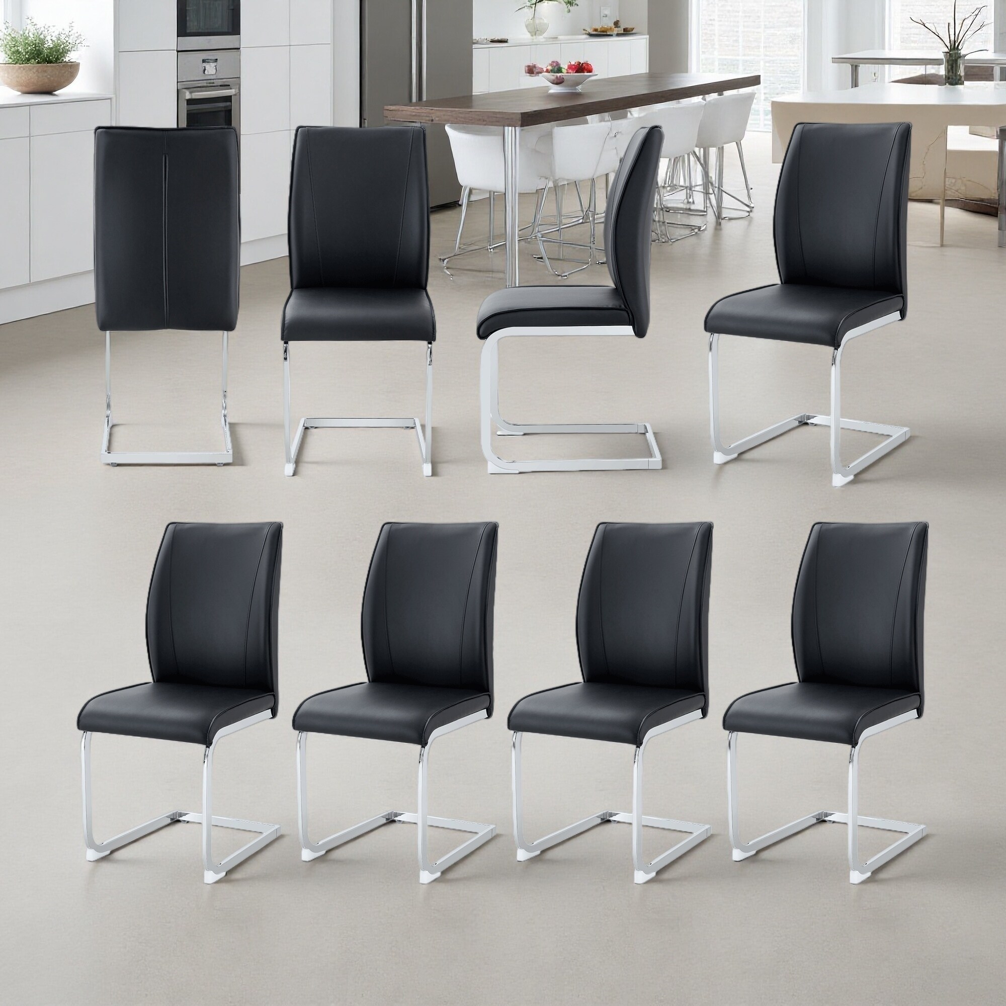 39"H Set of 8 High Back PU Leather High Resilience Arched Dining Chairs with Metal Legs -Ergonomic & Easy to Assemble