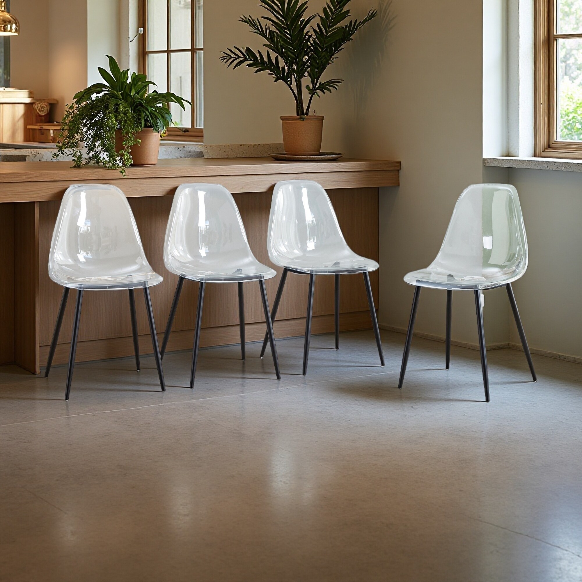 32.67"H Set of 4 Transparent PET Armless Dining Chair Set - Ergonomic Crystal Plastic Chairs with Plated Metal Legs