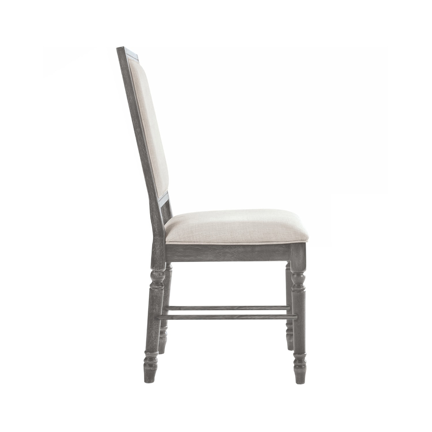 Set of 2 Linen Upholstered Dining Chairs, Cream and Weathered Gray