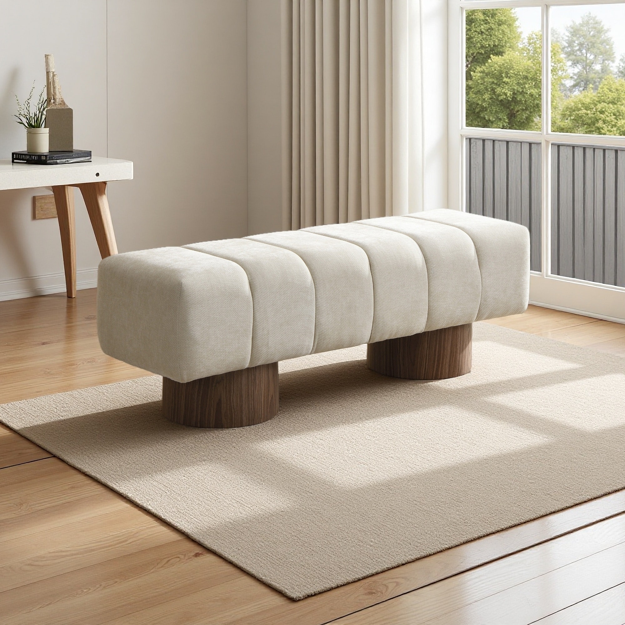 50"L Chenille Upholstered Bench with Wood Legs, No Assembly Needed, Multi-Functional Dining/Bedroom/Entryway Ottoman