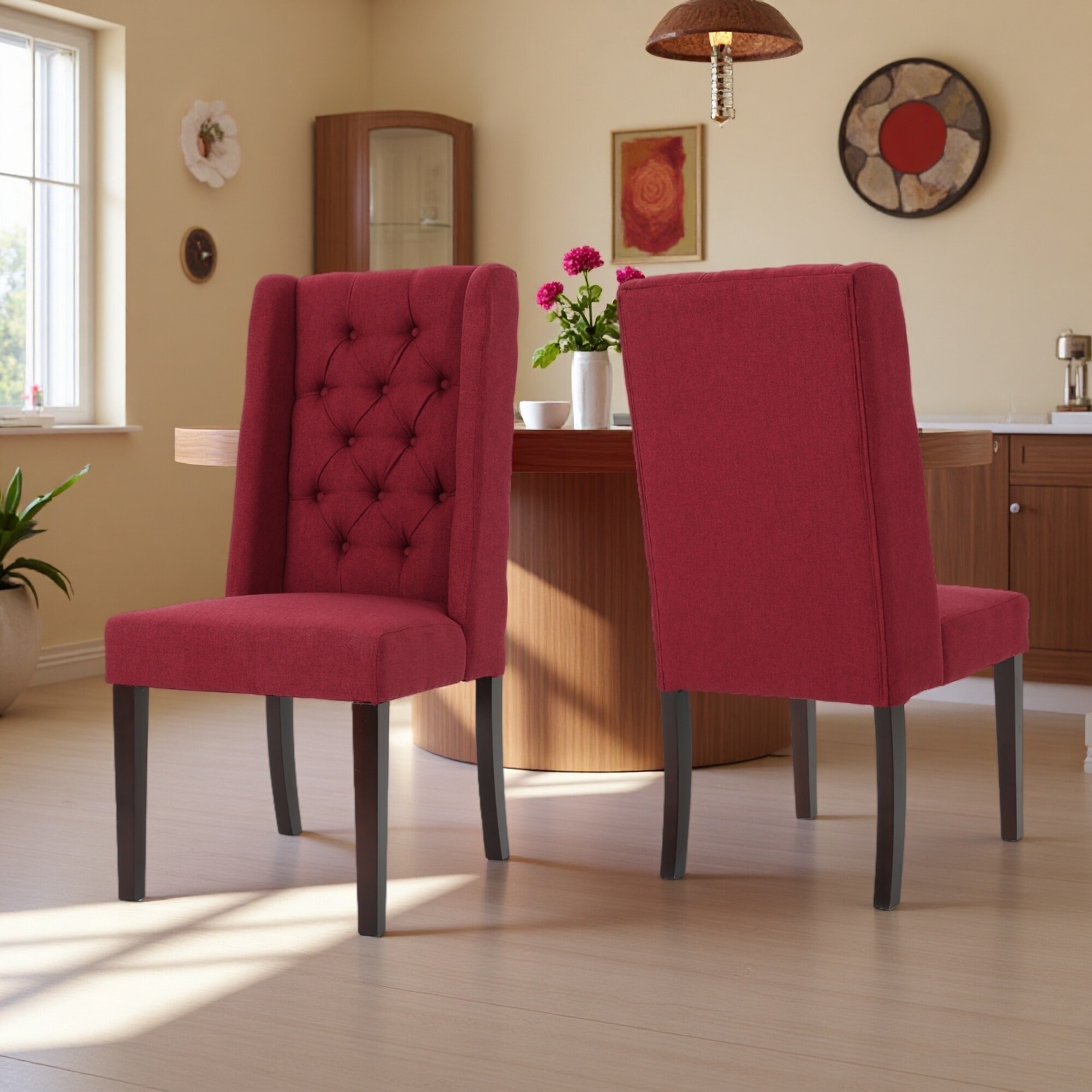 43"H Set of 2 Tufted Polyester Dining Chairs with High Back & Birch Wood Frame