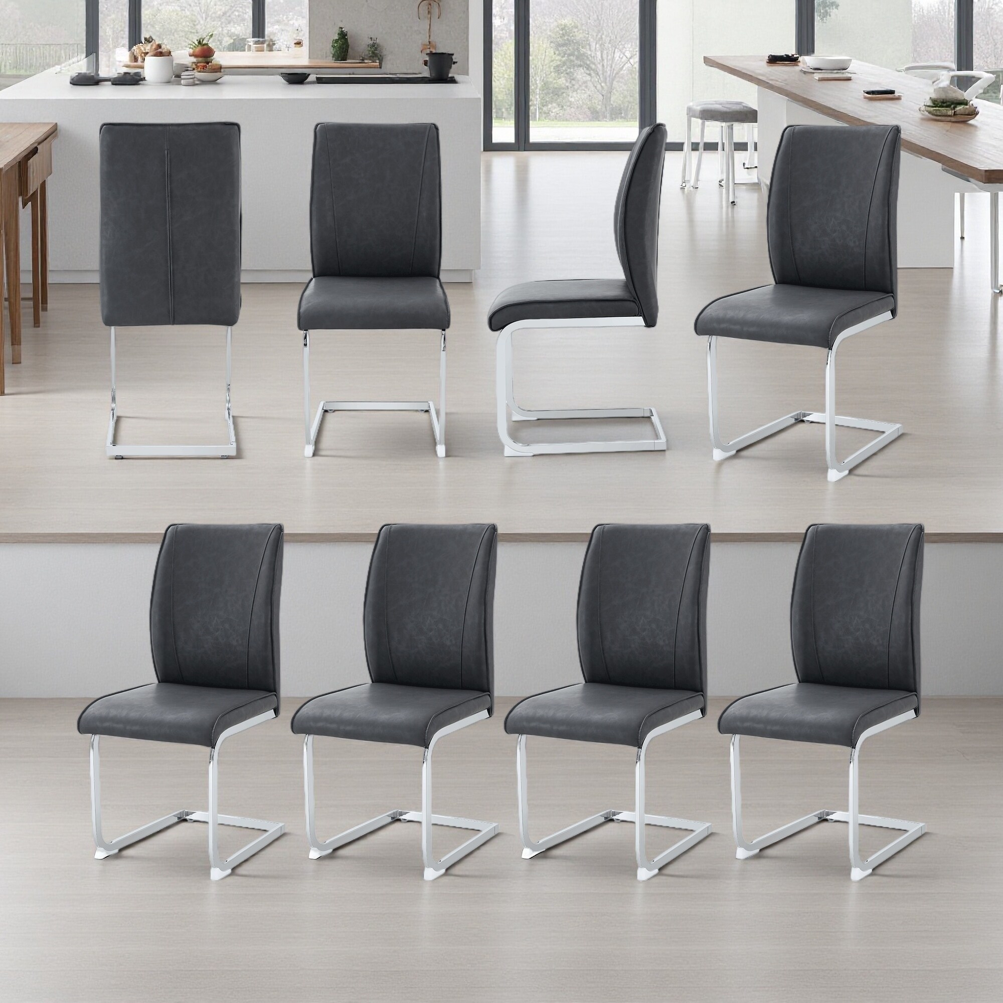 39"H Set of 8 High Back PU Leather High Resilience Arched Dining Chairs with Metal Legs -Ergonomic & Easy to Assemble