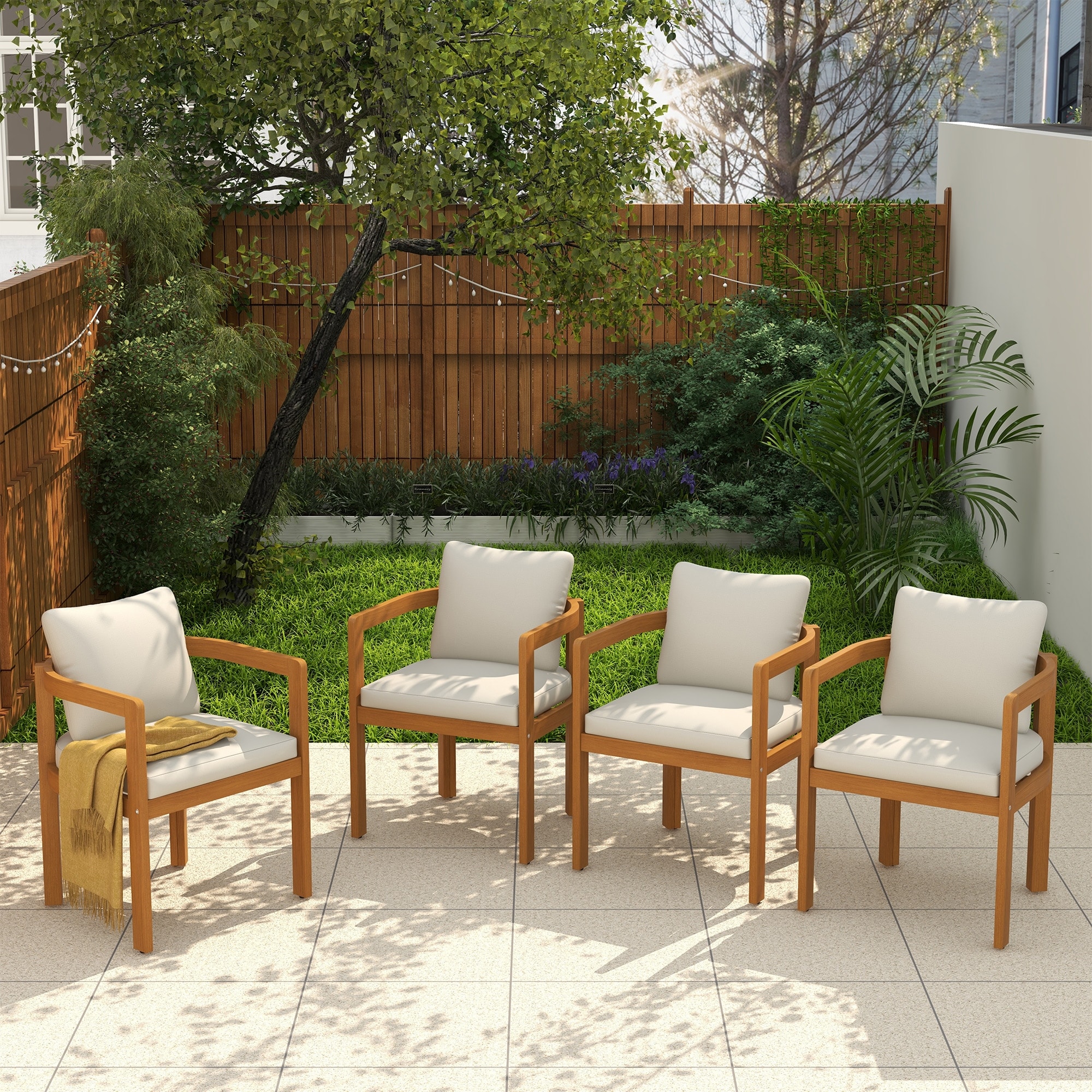 Outdoor 4-piece Wood Chairs With Large U-shaped Backrests